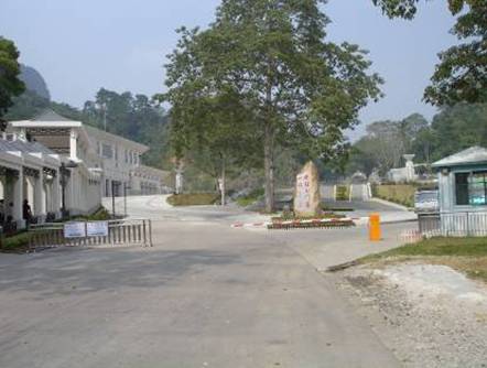 thấy thấp thoáng “tòa nhà mái tròn”, tức Trạm xuất nhập cảnh của phía