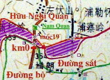 phía đông-nam Hữu Nghị Quan, nằm giữa các điểm A, B và C, D. Đường biên