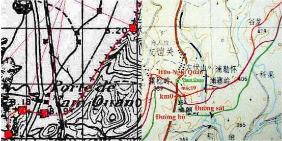 \* ARABIC 17 : Bản đồ ải Nam Quan thời Pháp (trái) và bản đồ 249 C (phải)